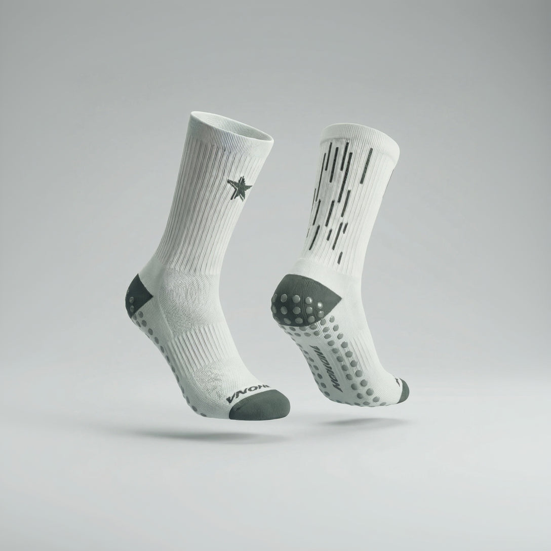 Usamos una combinación de nylon y spandex que brinda ajuste, durabilidad y comodidad, haciendo nuestras calcetas aptas para cualquier actividad.